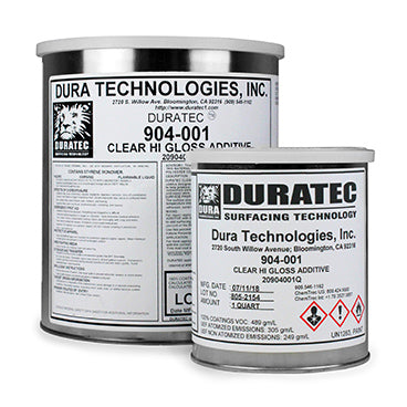 Blend 5 to 15% of Duratec Polyester Clear Hi-Gloss Additive to the tooling gel coat. The viscosity and thixotropic properties of the gel coat will determine the quantity to be added. ( The higher the viscosity and thixotropic properties, the more additive is required.) After blending, catalyze at the rate suggested by the tooling gel coat manufacturer.