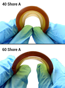 The 40 and 60 Shore A Urethane Casting Resins can create pliable, durable parts, and can be colored with white, black or blue urethane pigments. The 40 Shore A resin is approximately as hard as a pencil eraser, and the 60 Shore A is as hard as car tire tread. The Shore A urethanes shrink minimally when cured.