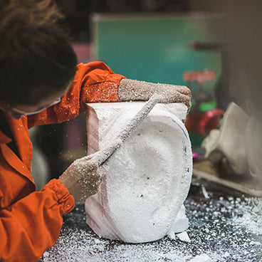 Starting from a correctly shaped and dimensionally stable plug, sand the entire surface with a coarse sandpaper (80 to 120 grit), making sure to feather in puttied and filled areas. Wipe the sanded surface with a fast solvent and a clean white cloth or paper towel. Do not use a tack rag.