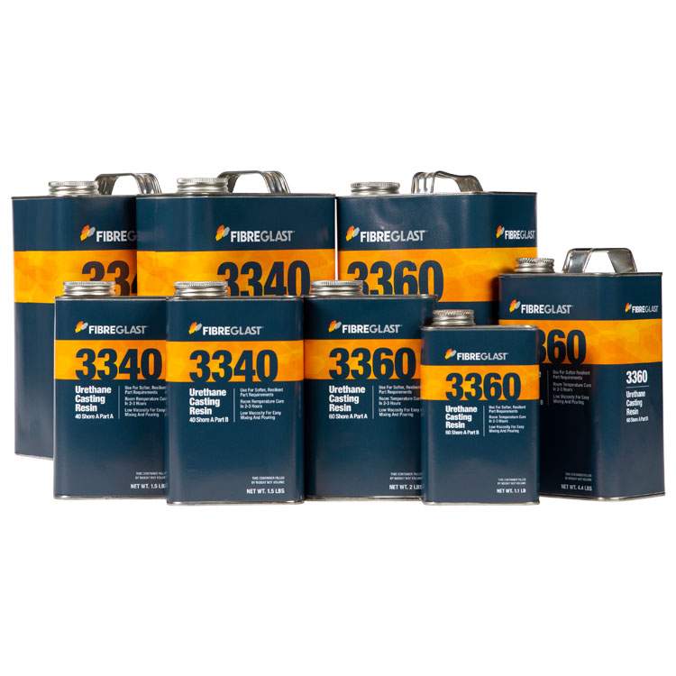 Urethane Casting Resin - Shore A 40 Shore A resin is available as a two-part kit, meaning it is one product made up of two containers. It is available in a variety of sizes that include: One quart kit, 40 Shore A (#3340-A); Part A comes in a quart container, Part B in a pint container. One gallon kit, 40 Shore A (#3340-B); Part A comes in gallon container, Part B in a smaller than gallon-sized container. 60 Shore A resin is available as a two-part kit, meaning it is one product made up of two containers. It is available in a variety of sizes that include: One quart kit, 60 Shore A (#3360-A); Part A comes in a quart container, Part B in a pint container. One gallon kit, 60 Shore A (#3360-B); Part A comes in gallon container, Part B in a smaller than gallon-sized container.